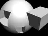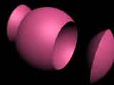 Исходные объекты: две сферы режут одну, затем полученный объект преобразован в редактируемую сетку и полученные элементы вынесены из сферы